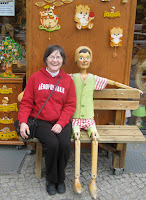 Deb catches up with me, and we take pictures, including one of me walking from East to West Berlin. Again, I am moved to tears. I touch the marble columns as I walk through, and it is as if I am floating. It was nice not to be on an organized tour trip, to where I could sit on the pedestals and just take it all in.